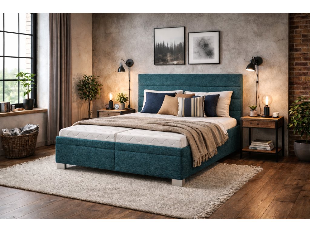 Luxusní, manželská postel Vario Malia s elegantním čalouněným čelem, které je vysoké 145 cm od českého výrobce MAWS . Součástí postele je kvalitní lamelový polohovací rošt a úložný prostor.